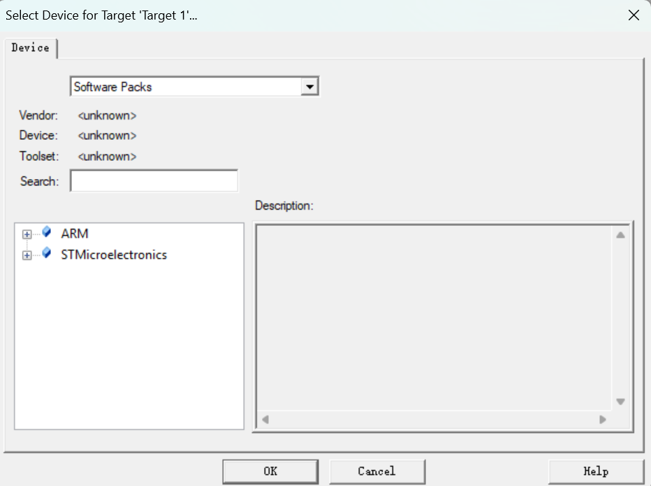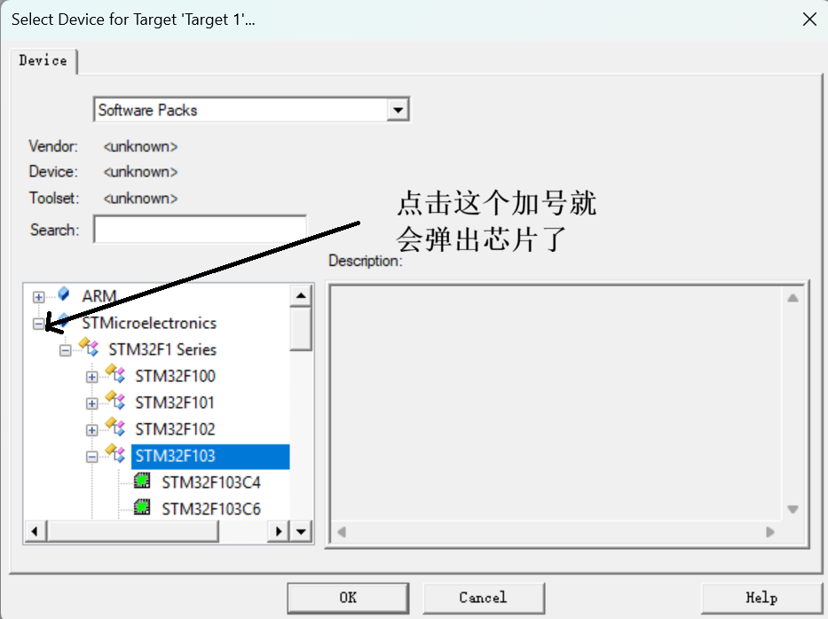Keil5创建新工程时找不到STM32芯片