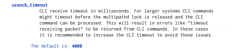 - 调整multipath配置中的uxsock_timeout时间,从默认4s到10s。