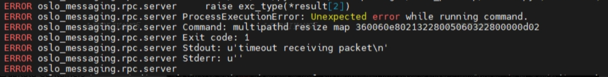 最近发现,本系统OpenStack私有云上,ARM主机的麒麟V10系统上,云主机磁盘云硬盘扩容时,出现multipath resize命令时常超时,现象如下: