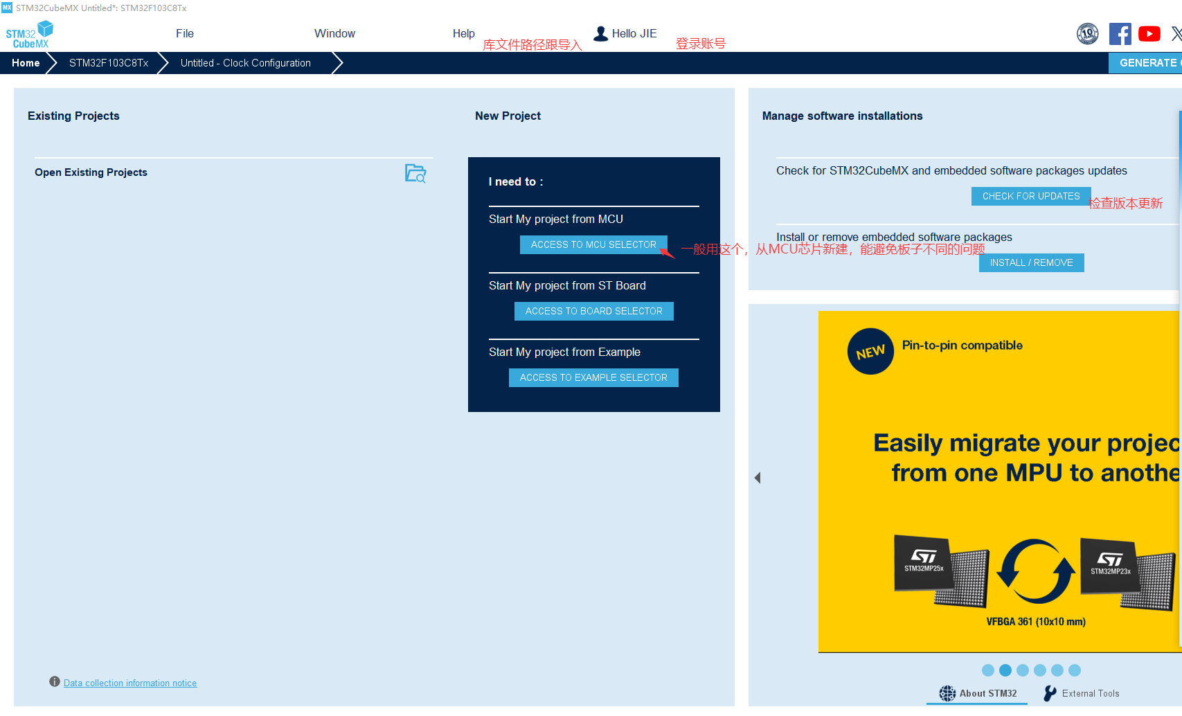也可以直接点击File新建文件工程,我只是有板子在手上,直接就通过芯片新建了.