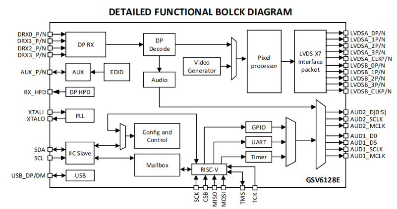 GSV6128E/ACP---嵌入式Display port 1.4到 LVDS转换器,带音频提取和嵌入式MCU