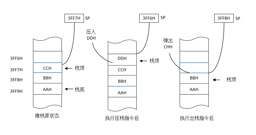 SP-1→SP:SP=3FF7H-1=3FF6H。