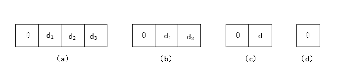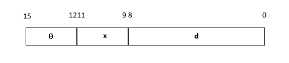 操作码 θ 占 4 位,寻址方式标志 x 占 3 位,形式地址 d 占 9 位。寻址方式标志码可有 8 种编码,可表示 8 种寻址方式。若用 EA 表示操作数的有效地址,则 EA=f(x,d) 在不同寻址方式下可分别计算如下。