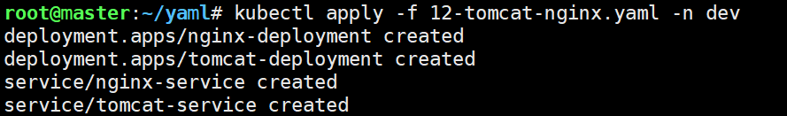 kubectl apply -f tomcat-nginx.yaml -n dev