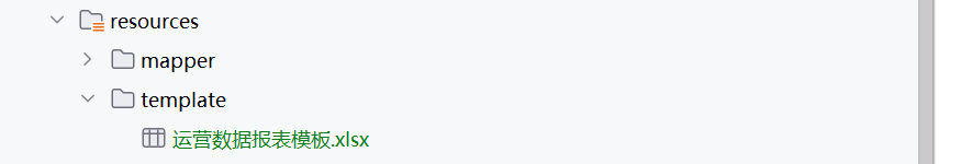 /*** 导出近30天的运营数据报表* @param response*/@Overridepublic void exportData(HttpServletResponse response) {LocalDate now = LocalDate.now();LocalDate begin = now.minusDays(30);LocalDate end = now.minusDays(1);//查询运营数据BusinessDataVO businessDataVO = workspaceService.getBusinessData(LocalDateTime.of(begin, LocalTime.MIN),LocalDateTime.of(end, LocalTime.MAX));//读取模板,将其作为输入流读取到内存中InputStream inputStream = this.getClass().getClassLoader().getResourceAsStream("template/运营数据报表模板.xlsx");try {XSSFWorkbook excel = new XSSFWorkbook(inputStream);XSSFSheet sheet = excel.getSheet("Sheet1");sheet.getRow(1).getCell(1).setCellValue(begin + "至" + end);//获取第四行XSSFRow row4 = sheet.getRow(3);row4.getCell(2).setCellValue(businessDataVO.getTurnover());row4.getCell(4).setCellValue(businessDataVO.getOrderCompletionRate());row4.getCell(6).setCellValue(businessDataVO.getNewUsers());//获取第五行XSSFRow row5 = sheet.getRow(4);row5.getCell(2).setCellValue(businessDataVO.getValidOrderCount());row5.getCell(4).setCellValue(businessDataVO.getUnitPrice());//明细数据for (int i=0;i<30;i++){LocalDate date = begin.plusDays(i);businessDataVO = workspaceService.getBusinessData(LocalDateTime.of(date,LocalTime.MIN),LocalDateTime.of(date, LocalTime.MAX));XSSFRow row = sheet.getRow(i+7);row.getCell(1).setCellValue(date.toString());row.getCell(2).setCellValue(businessDataVO.getTurnover());row.getCell(3).setCellValue(businessDataVO.getValidOrderCount());row.getCell(4).setCellValue(businessDataVO.getOrderCompletionRate());row.getCell(5).setCellValue(businessDataVO.getUnitPrice());row.getCell(6).setCellValue(businessDataVO.getNewUsers());}//通过输出流进行文件下载到客户端服务器中OutputStream outputStream = response.getOutputStream();excel.write(outputStream);outputStream.close();excel.close();inputStream.close();} catch (IOException e) {throw new RuntimeException(e);}}模板放在