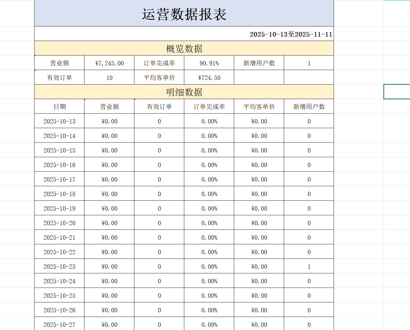 public class BusinessDataVO implements Serializable {private Double turnover;//营业额private Integer validOrderCount;//有效订单数private Double orderCompletionRate;//订单完成率private Double unitPrice;//平均客单价private Integer newUsers;//新增用户数}