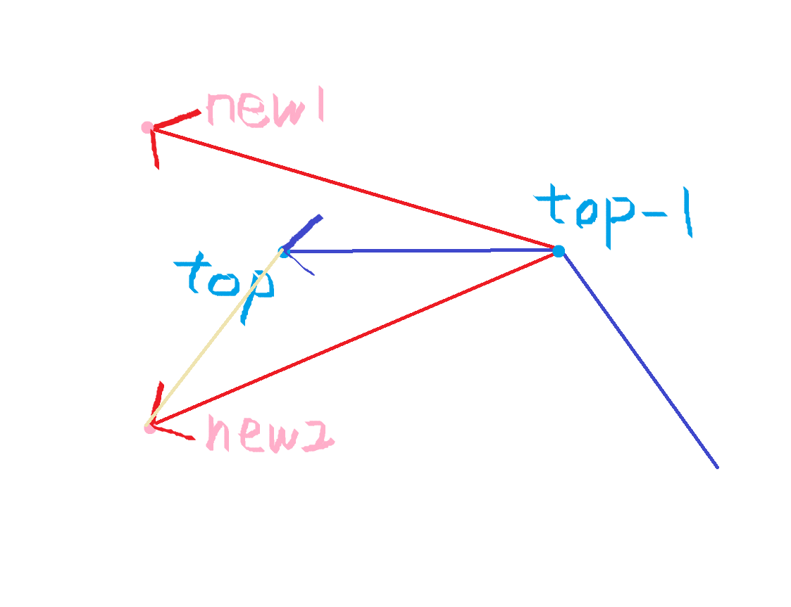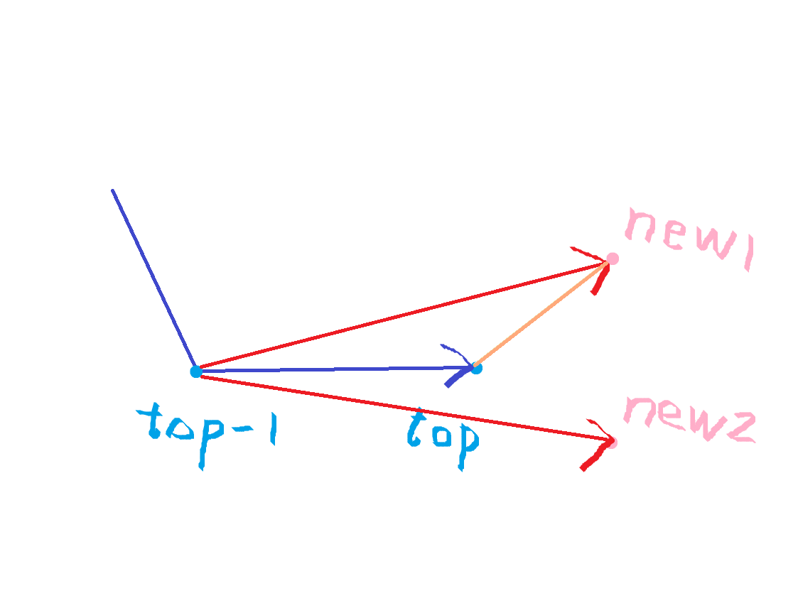 那么就从 top - 1 连到 new,看看是否在向量 top - 1 连到 top 的左边。