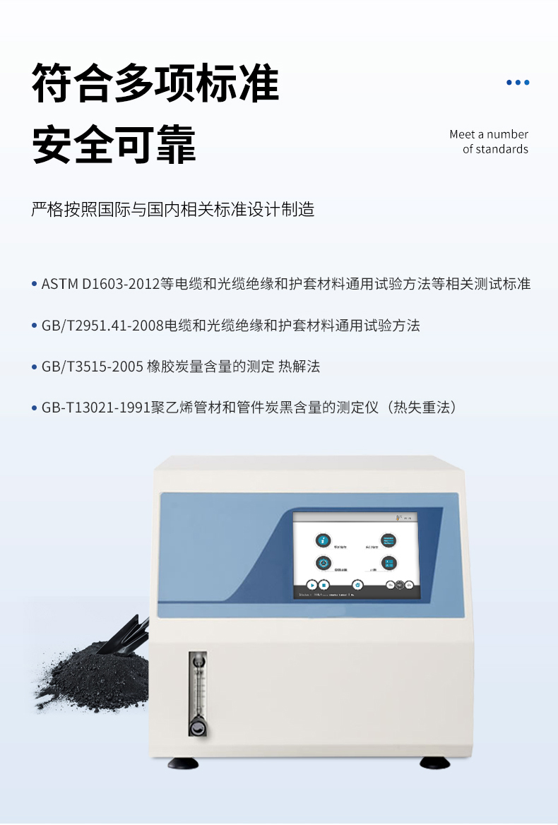 在聚合物材料科学中,炭黑含量作为一项关键的技术指标,直接影响材料的硬度、弹性、耐磨性和绝缘性能。准确测定炭黑含量对于优化材料配方、提升产品质量至关重要。炭黑仪作为一种专业分析设备,广泛应用于聚乙烯、聚丙烯和聚丁烯等塑料材料的炭黑含量测定。本文将从技术原理、仪器设计、应用案例及优势等方面,深入探讨炭黑仪在材料分析中的核心作用,旨在为行业用户提供实用的参考。