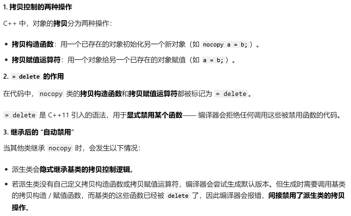 public:nocopy(){}nocopy(const nocopy &) = delete;const nocopy& operator = (const nocopy &) = delete;~nocopy(){}