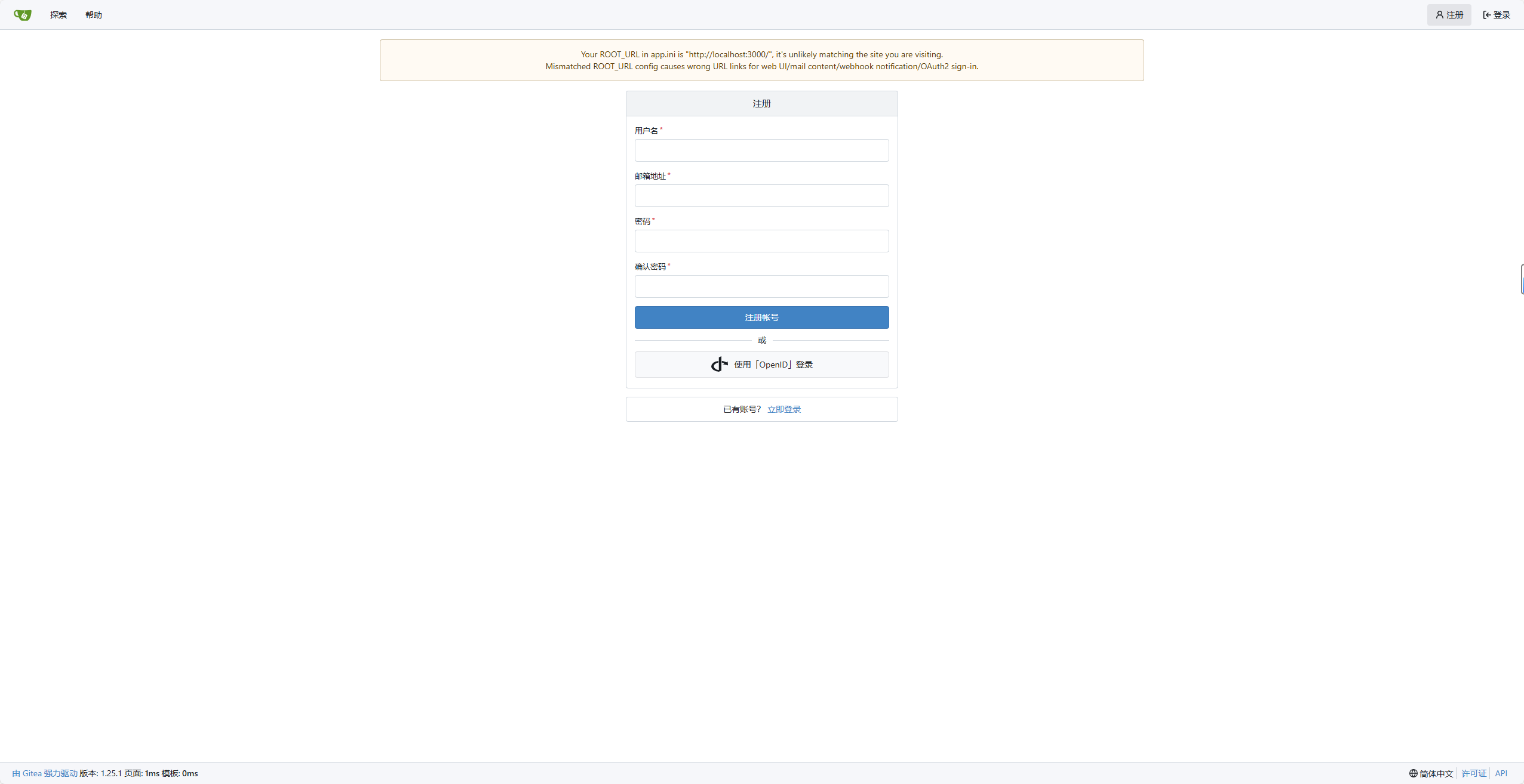 version: "3"networks:gitea:external: falseservices:server:image: docker.gitea.com/gitea:latest container_name: gitea environment:- USER_UID=1000 - USER_GID=1000 - GITEA__database__DB_TYPE=mysql- GITEA__database__HOST=gitea-db:3306 - GITEA__database__NAME=gitea- GITEA__database__USER=root- GITEA__database__PASSWD=123456- GITEA__log__LEVEL=info- GITEA__log__ROOT_PATH=/data/logrestart: always networks:- gitea volumes:- /etc/timezone:/etc/timezone:ro - /etc/localtime:/etc/localtime:roports:- "3000:3000" - "222:22" depends_on:- db command: |sh -c "mkdir -p /data/log && chown git:git /data/log && /usr/bin/entrypoint"db:image: mysql:8.0.33 container_name: gitea-db environment:- MYSQL_ROOT_PASSWORD=123456 - MYSQL_DATABASE=gitea - MYSQL_ROOT_HOST=% - MYSQL_INITDB_SKIP_TZINFO=1 restart: always networks:- gitea