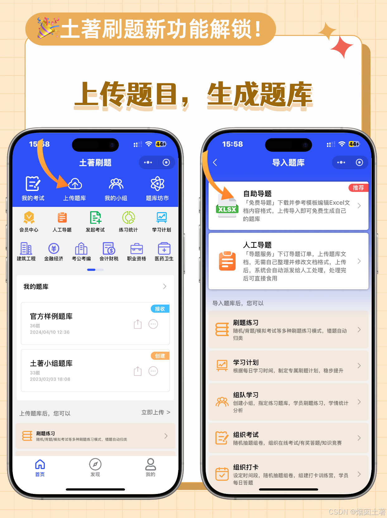 1⃣️打开土著刷题小🍊序,将题目导入生成题库,用于答题考试抽题