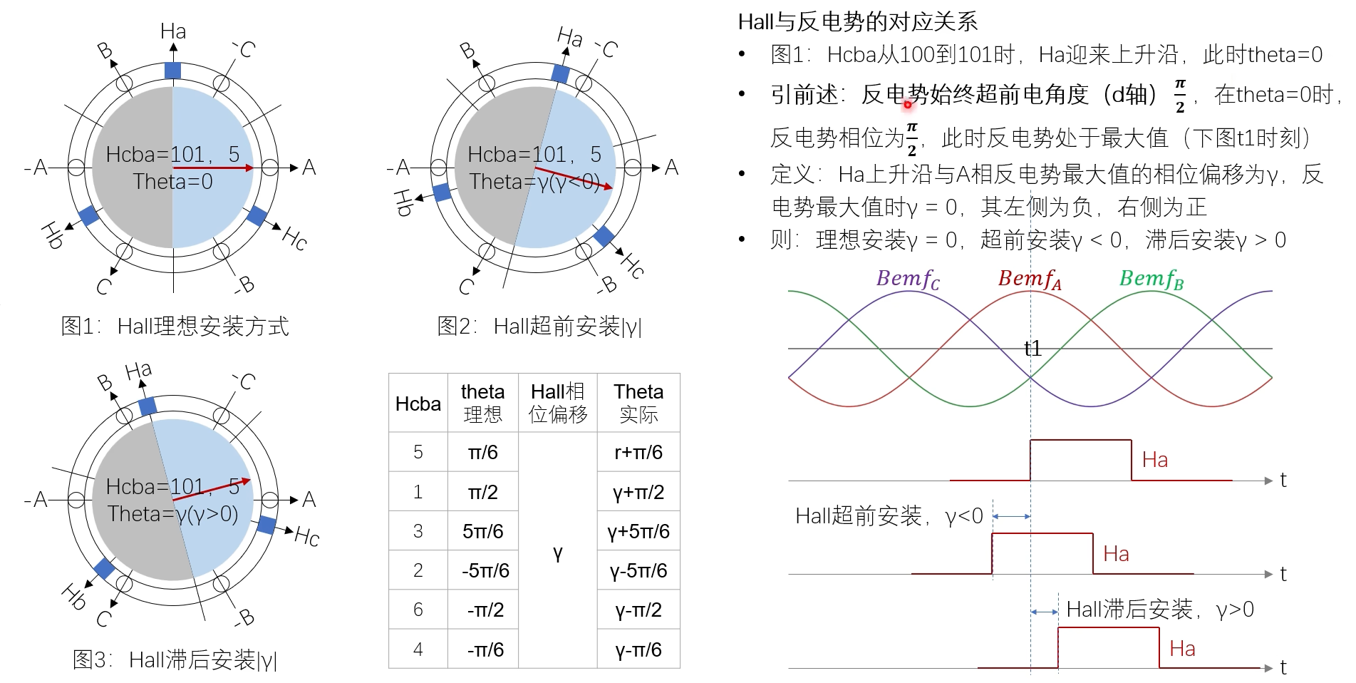 hall传感器理想安装时,Ha的上升沿就对应A项反电动势的最大值;