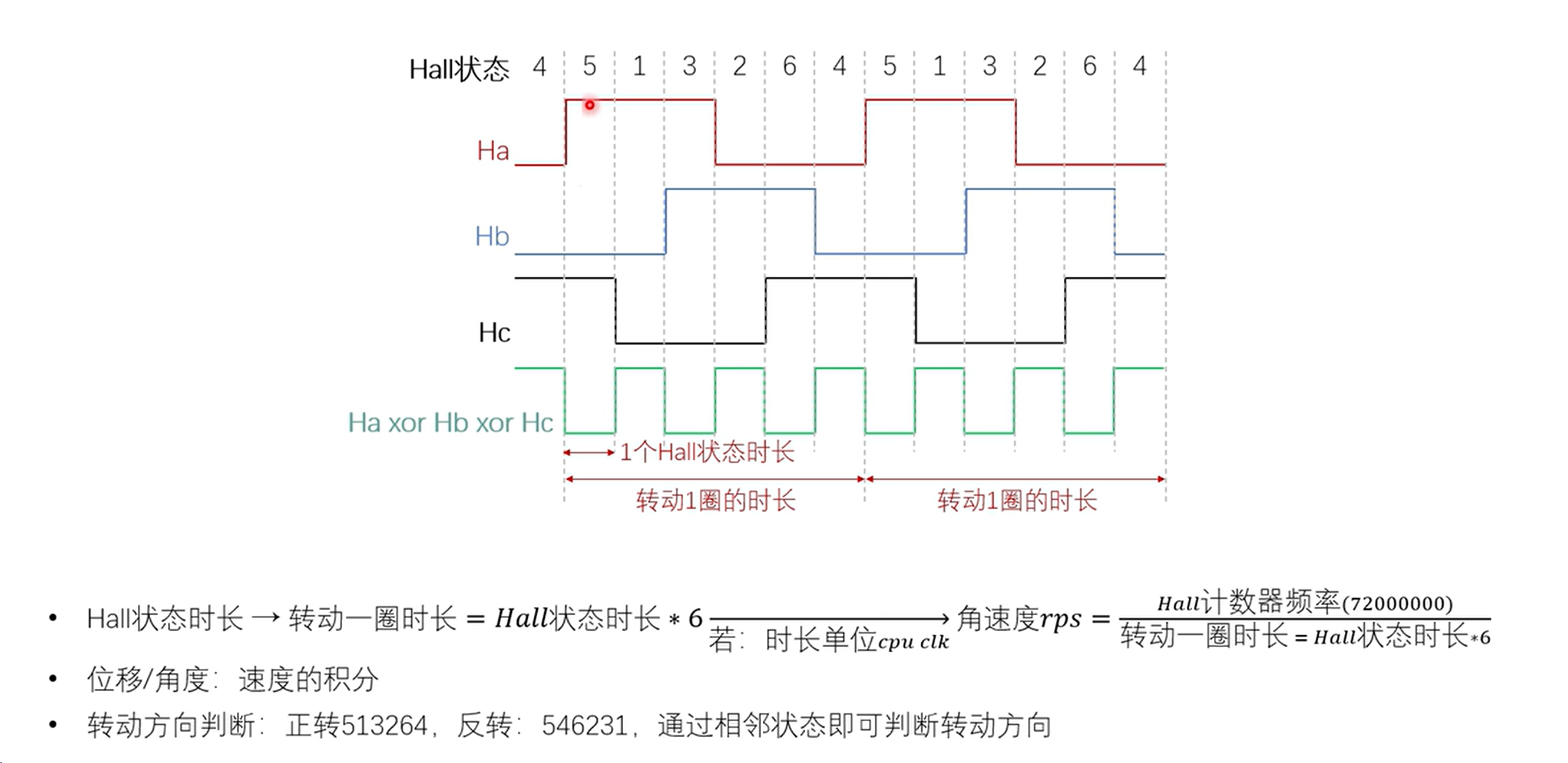 hall异或操作:Ha or Hb or Hc,例如5分区ha为1,hb为0,异或为1;hc为1,ha与hb的结果与hc异或,即1与1异或,结果为0;