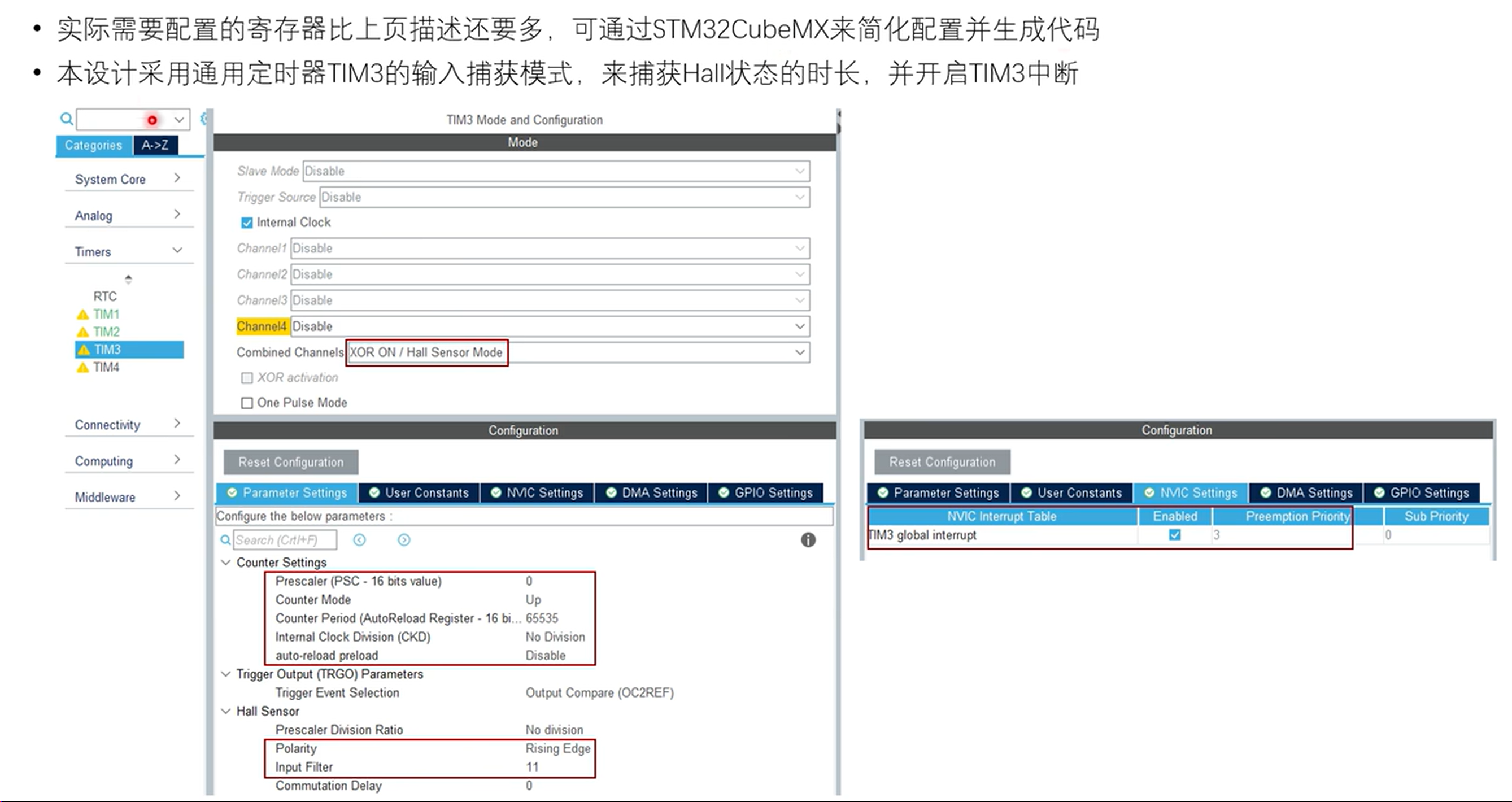 hall传感器配置为极性上升沿,输入滤波配置为11(根据实际效果去配置);