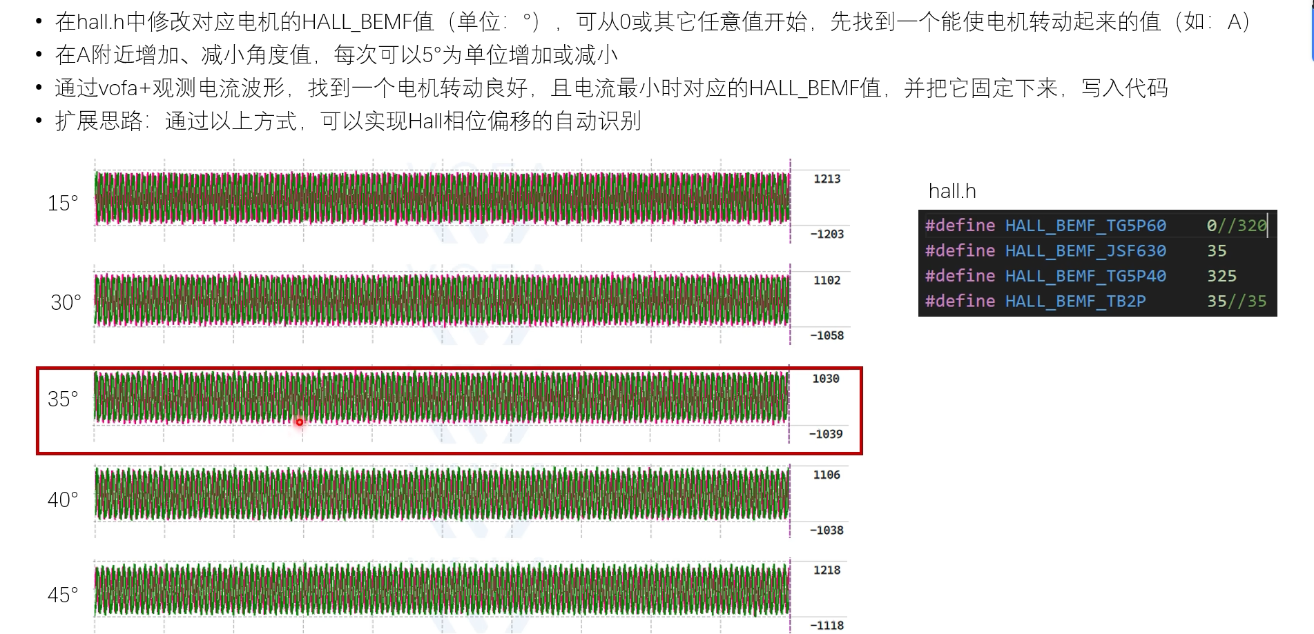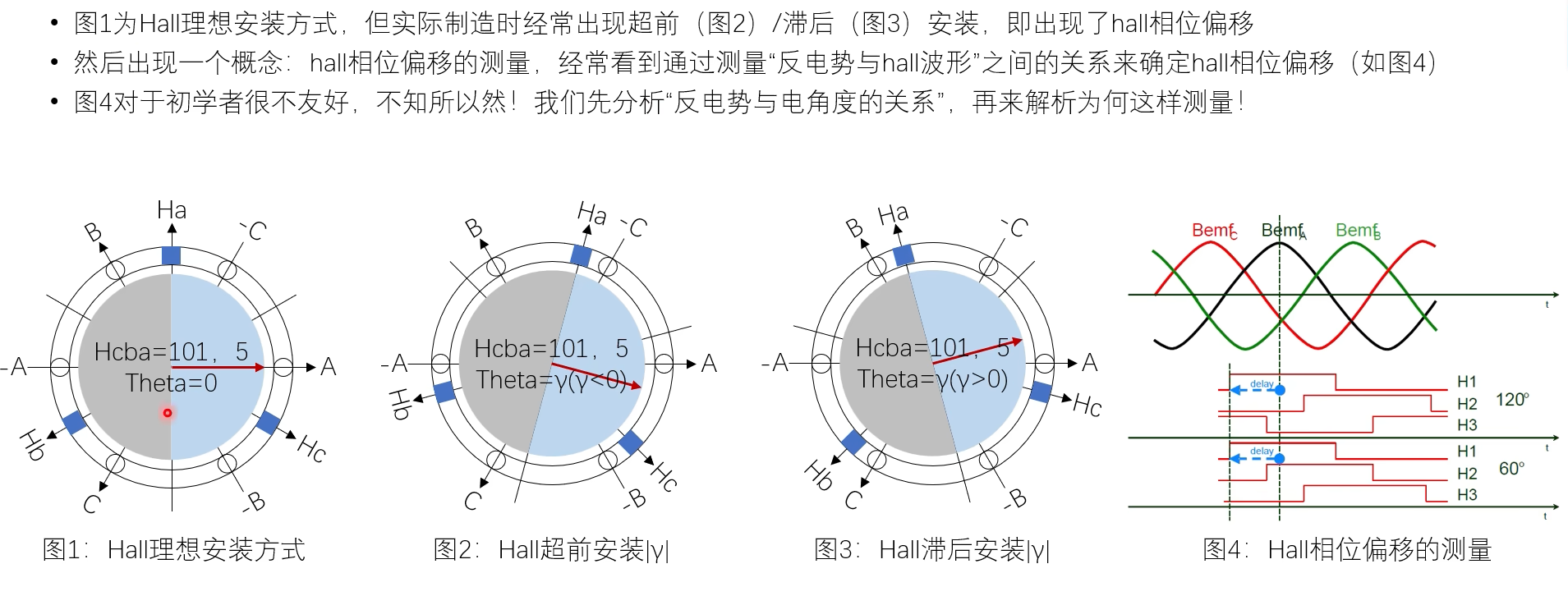 对于hall安装误差,可以通过测量HA的上升沿和A相反电势最大值之间的相位差来确定