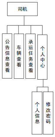司机角色则主要关注个人中心的功能,包括个人信息修改、密码修改、承运任务查看、车辆查看以及公告信息查看。司机通过个人中心管理自己的信息,查看相关的承运任务,并且能够获取最新的公告通知。司机与管理员的功能有明显区分,司机的操作范围相对较小,主要集中在个人信息管理和任务执行上。