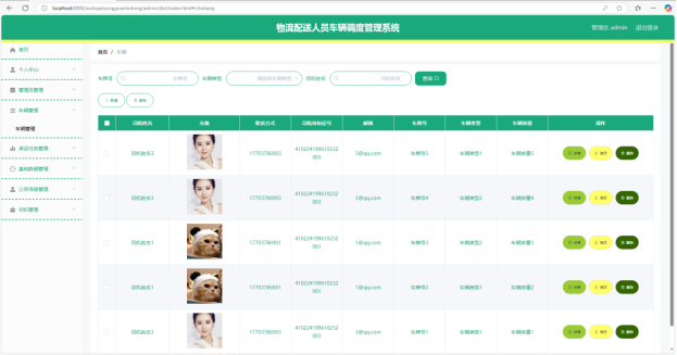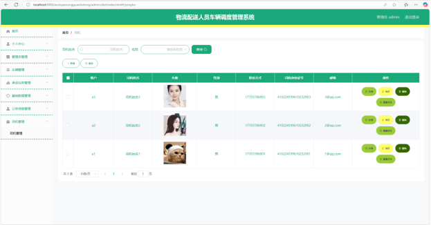 司机管理:管理员可以管理司机信息,调整司机工作安排,处理司机的任务分配与执行情况,保障配送任务的顺利完成。