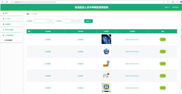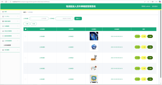 公告管理:管理员可以发布平台公告,向司机、管理者和其他用户传达重要消息,如配送任务的变化、系统更新等。