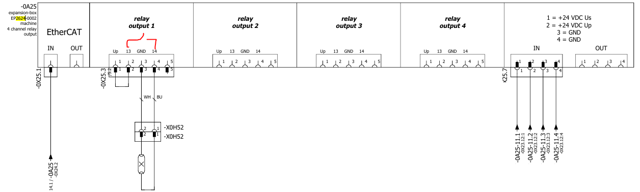 4.1.2 EP2624-0002 四继电器模块接线说明