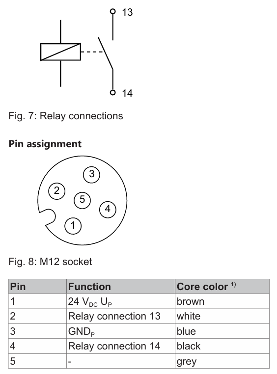 信号通过 M12 螺旋式连接器连接。模块引脚与电源触点相连