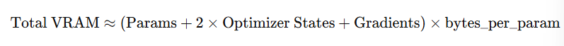 | 2️⃣ 优化器状态 (Optimizer States) | Adam 等优化器维护的 m, v 向量 | ✅ 可通过优化器选择或零优化减少 | 一般为参数量的 2~3 倍 |