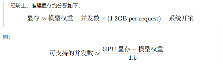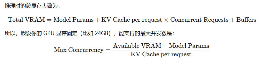 | 总显存 | ≈ 参数 + 并发 × (KV Cache + buffer) |