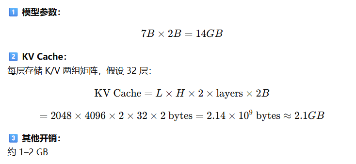 | 每请求 KV Cache(seq_len=2048) | 1GB |