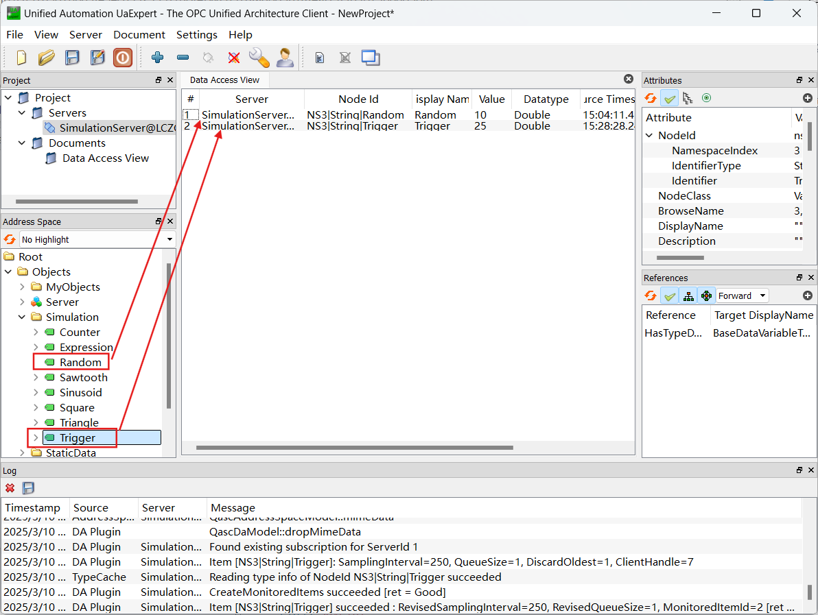 3)使用UaExpert,读取OPC UA服务器中的变量;