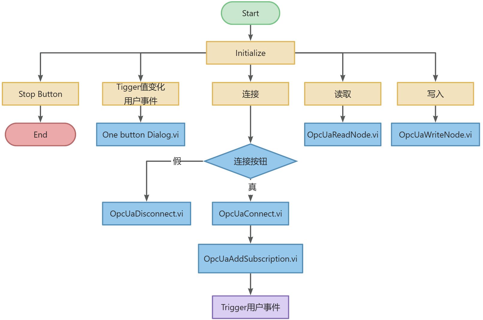 本节区别于进阶01内容,使用c#编写的dll进行OpcUa通信,不需要安装Labview OPC UA工具包,因为该工具包需要下载收费,这样可以减少开发成本,直接将上面的OpcUaHelper.lvclass拷贝到开发程序中就可以使用。