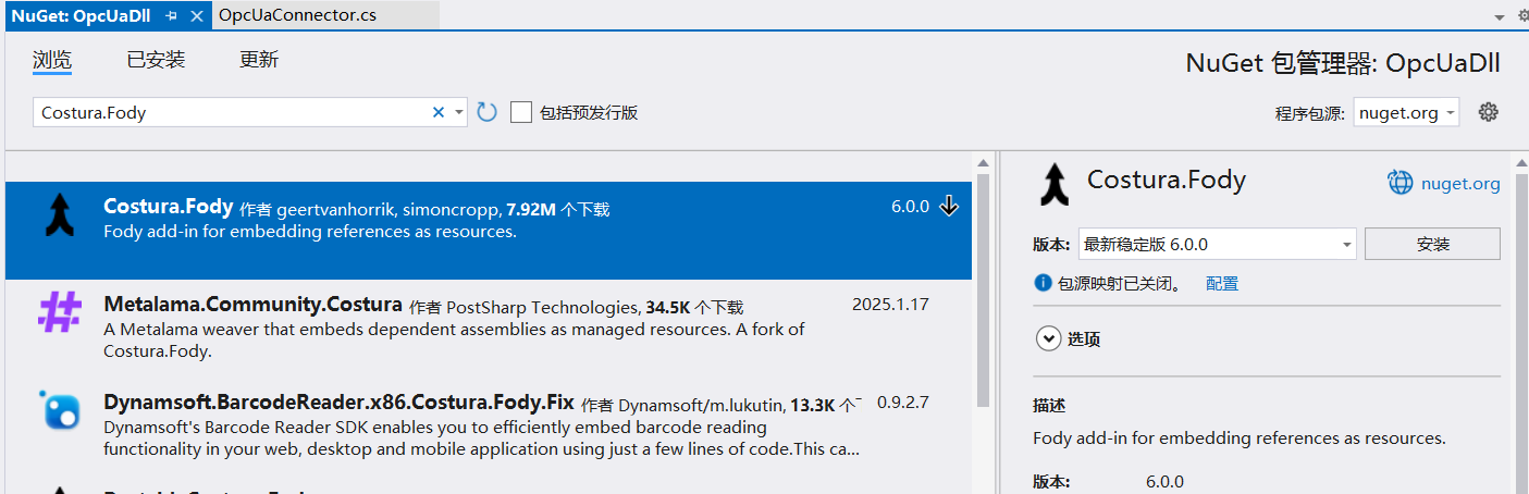 下载Costura.Fody包,可以将多个dll合并到一个dll中,让文件变得更加简洁。