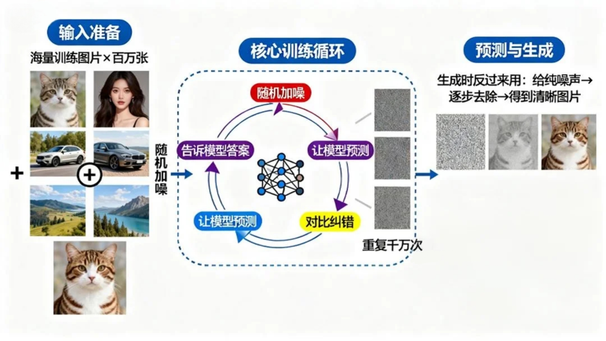 这里我们已经接近 Diffusion 的核心原理了:**我们不是要直接画图,而是去掉噪声。**像是一个雕刻家一样:雕刻家仅仅是去掉石头多余的部分,把真正的形象"引出"。------米开朗基罗