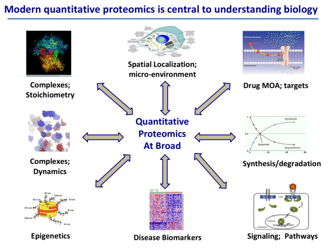 它比基因组学更复杂,因为生物体的基因组或多或少是恒定的,而蛋白质组因细胞而异。蛋白质组学研究的关键技术包括质谱分析、X射线晶体学、核磁共振和凝胶电泳。基于不用蛋白质组学的技术用于不同的研究环境,例如检测各种诊断标志物,疫苗生产的候选物,了解致病机制,响应不同信号的表达模式的改变以及解释不同疾病中的功能蛋白途径[15]。