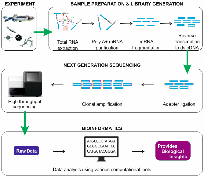 RNA-Seq一种使用深度测序技术的转录组分析方法,它使用下一代测序(NGS)来揭示特定时间生物样品中RNA的存在和数量,分析不断变化的细胞转录组[14]。