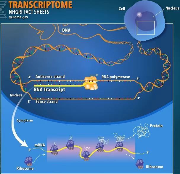 转录组学(Transcriptomics)是对基因型在给定时间产生的RNA转录本的分析,该转录本在基因组,蛋白质组和细胞表型之间提供了联系。转录组是所有RNA分子的集合,包括mRNA,rRNA,tRNA和在一个或一个细胞群中产生的非编码RNA。转录组学也称为表达谱分析,检查给定细胞群中RNA的表达水平[13]。