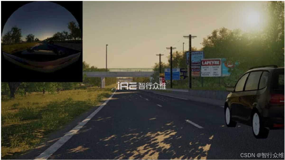 摄像头:得益于Unreal Engine 5的渲染能力,它能生成照片级的图像。更神奇的是,它支持鱼眼相机模型,并能模拟各种真实物理效应,如太阳眩光、沙尘暴、镜头裂纹、树叶遮挡乃至ISP(图像信号处理)故障,对于训练和验证感知算法的鲁棒性至关重要,只有在模拟环境里多踩坑,才能在实车路上少踩雷。