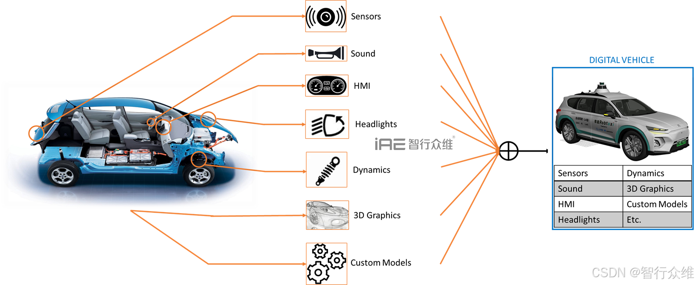 所有这些传感器,都被很好地整合进了“数字车辆”中。“数字车辆”作为一个集成化的载体,意味着你可以通过DVE文件统一定义车辆的动力学、传感器、图形、声学等属性,极大地便利了模型的构建、版本管理及团队协作。