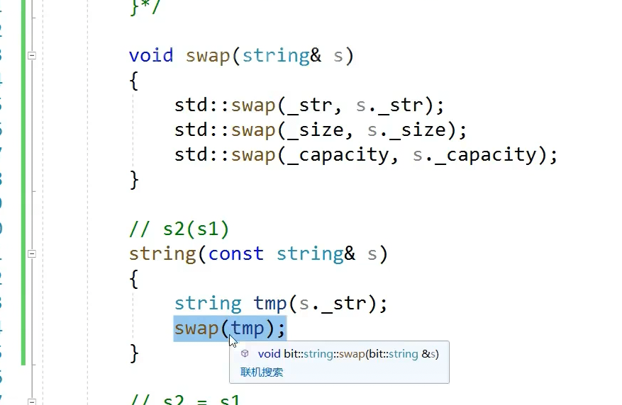 以后用着几种方法写,拷贝构造必须引用,赋值不用,tmp就跟s3有一样大空间一样大值,一换,一销就搞定。