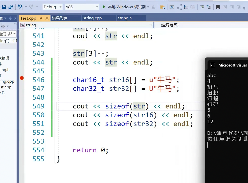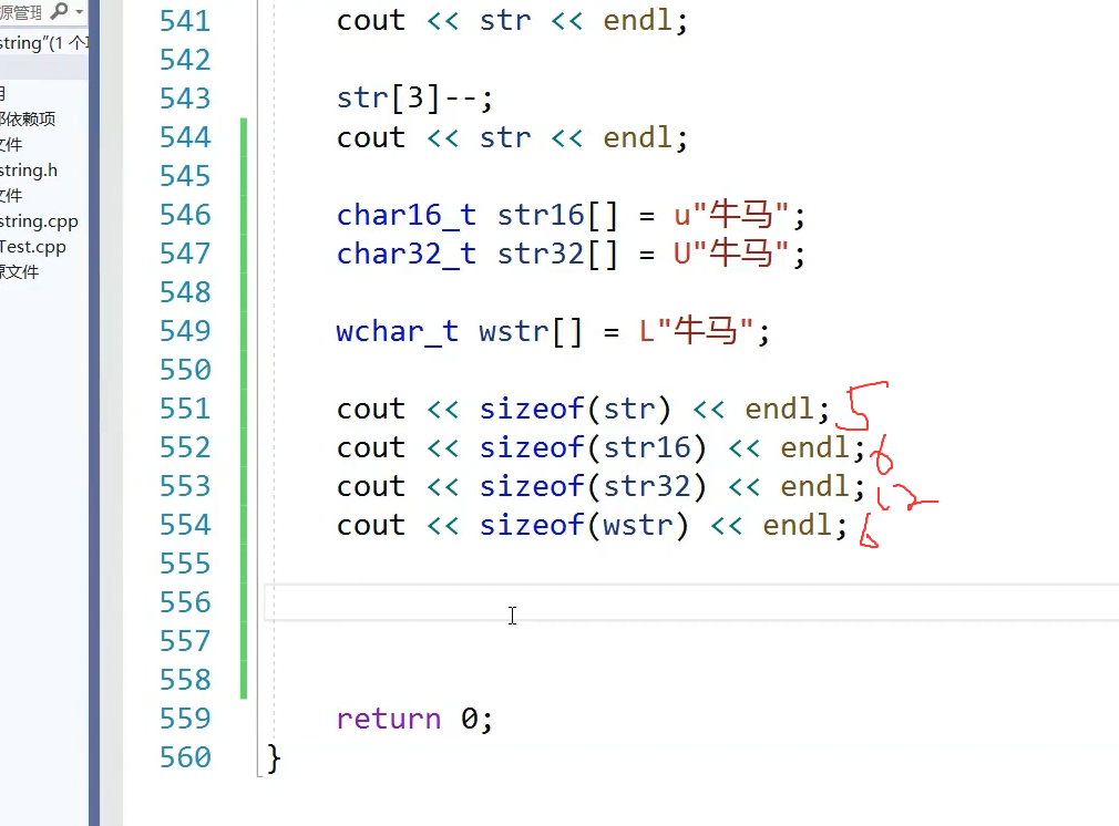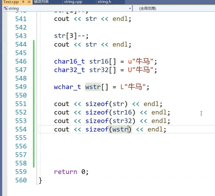 wide char是宽字符不确定几个字节 string对应窄字符,确定是八个字节,比如说long不同平台占用的字节不同,确定的是wide char 在windows是两个字节,跟char16_t功能是重叠的, 存utf16