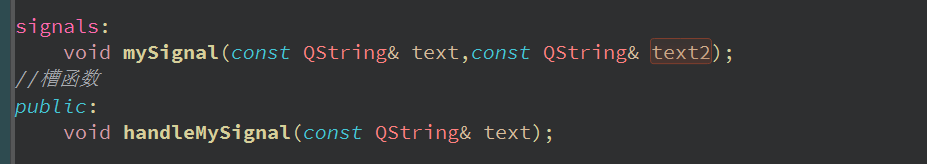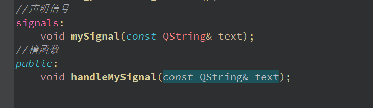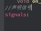 这个也是qt自己扩展出来的关键字,qmake的时候,调用一些代码的分析/生成工具——扫描到 signals 这个关键字的时候,此时就会自动的把下面的函数声明认为是信号,并且给这些信号函数自动的生成函数定义。