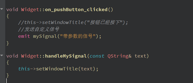 {ui->setupUi(this);connect(this,&Widget::mySignal,this,&Widget::handleMySignal);