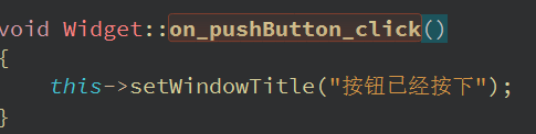 {//按下按钮修改窗口标题this->setWindowTitle("按钮已经按下");