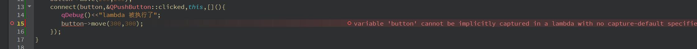 lambda语法是C++11引入的,如果是QT5及更高版本那么默认按照C++11来编译,如果是QT4或者更老的版本就需要在.pro文件中加上C++11 的编译选项