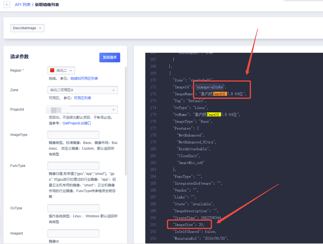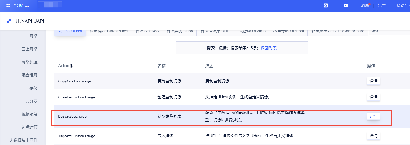 控制台链接:https://console.ucloud.cn/uapi/detail?id=DescribeImage