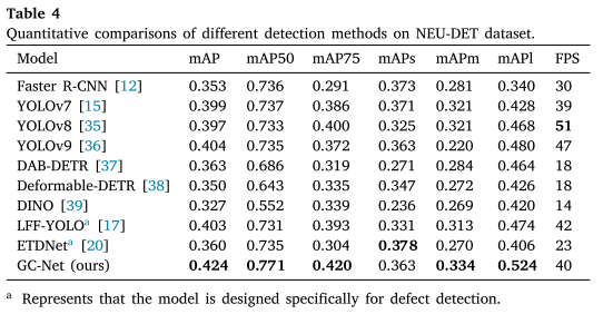摘要:钢材表面缺陷检测在现代社会中发挥着举足轻重的作用,可以确保建筑和制造的质量和安全,降低生产成本,提高效率,推动技术创新。然而,这项任务遇到了挑战,包括解决非结构化功能、多尺度问题和可用数据稀缺。为了克服这些挑战,本文提出了一种全局关注模块和级联融合网络用于钢材表面缺陷检测,称为GC-Net。在该网络中,提出了全局注意力模块,以增强模型处理非结构化缺陷的能力。随后,设计了级联融合网络进行多尺度特征融合,从而提高了对不同尺度缺陷的检测精度。随后,在后处理阶段采用软非最大值抑制消除冗余检测盒,进一步提高了网络的检测性能。最后,在实验过程中使用了一系列数据增强技术,包括过采样和小对象增强,以缓解数据稀缺的问题。在两个钢材表面缺陷检测数据集上的实验结果表明,该方法在MAP50度量(NEU-DET:0.771,GC10-DET:0.635)方面优于最先进的方法。