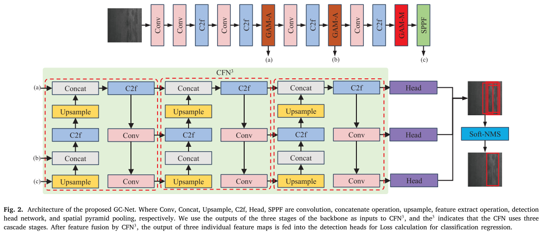 输入图像 → 骨干网络(带GAM) → 级联融合网络(CFN) → 检测头 → Soft-NMS后处理