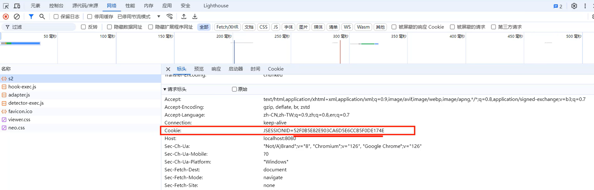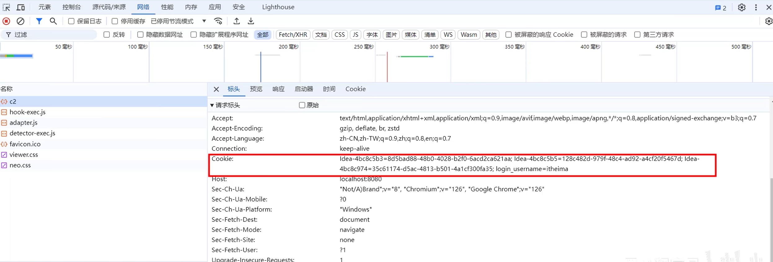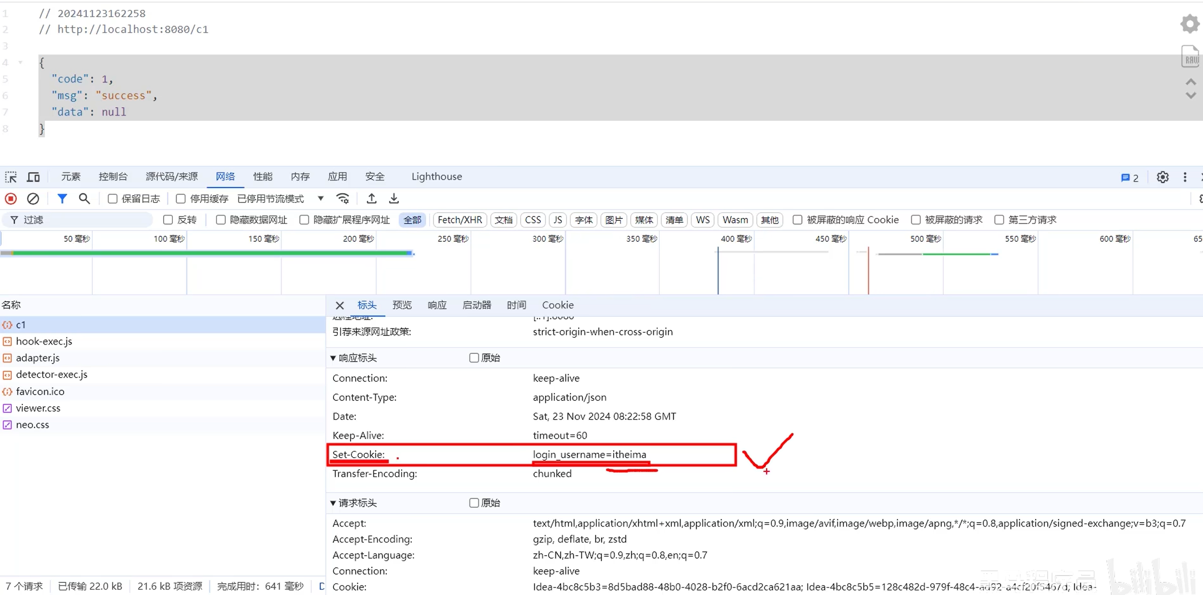 2. 访问c2接口,此时浏览器会自动的将Cookie携带到服务端,是通过请求头Cookie携带的。