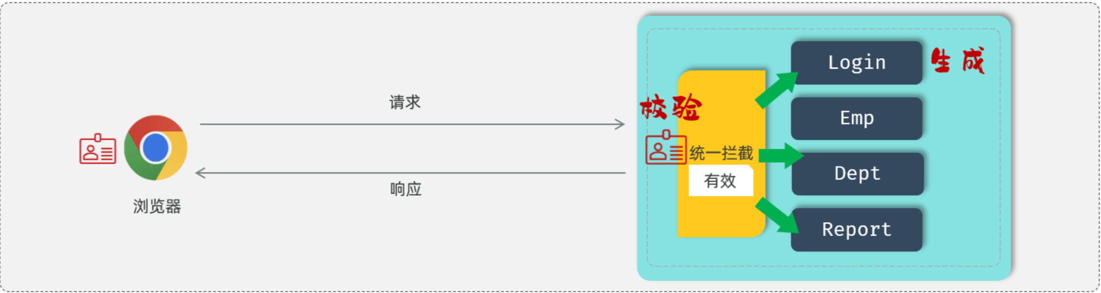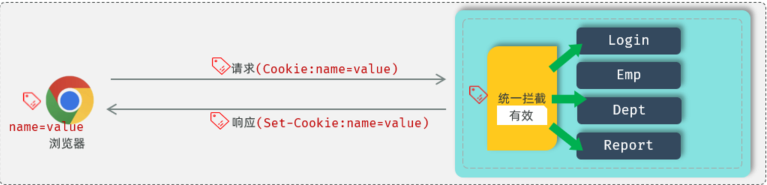 在浏览器发起请求时,需要在服务端进行统一拦截,拦截后进行登录校验。