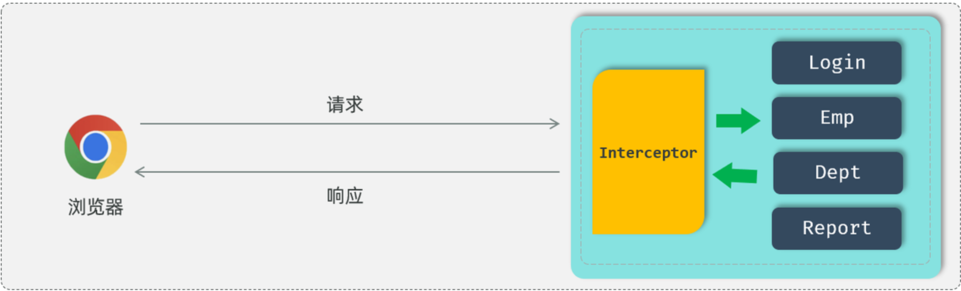 拦截范围不同:过滤器Filter会拦截所有的资源,而Interceptor只会拦截Spring环境中的资源。