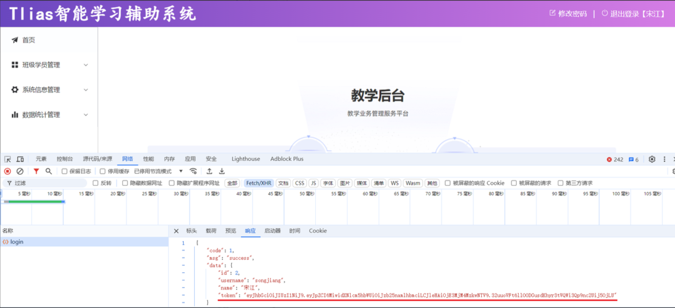 登录成功之后,我们会在服务端生成一个JWT令牌,并且把JWT令牌返回给前端,前端会将JWT令牌存储下来。