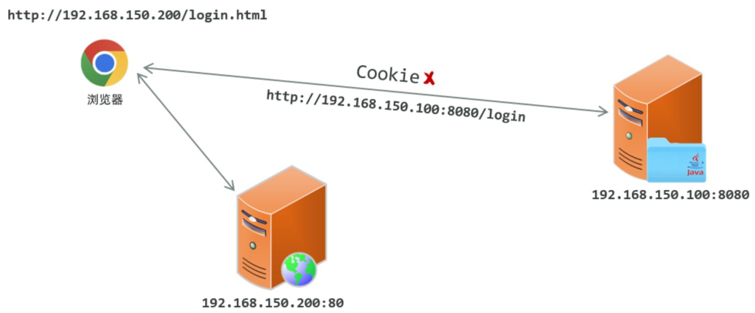 那此时就存在跨域操作了,因为我们是在 http://192.168.150.200/login.html 这个页面上访问了http://192.168.150.100:8080/login 接口